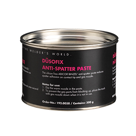 Простий захист газового сопла від налипання зварювальних бризок. Біологічно розкладається, не підлягає класифікації, не містить силікону. Металева банка дозволяє безпечно занурювати в неї розпечене сопло зварювального пальника. Адгезія бризок значно знижується завдяки захисній плівці.Антипригарна паста перешкоджає налипанню зварювальних бризок в області газового сопла, збільшує ресурс витратних комплектуючих. Гаряче сопло пальника занурюється в пасту, де вся поверхня витратних частин покривається захисною плівкою.